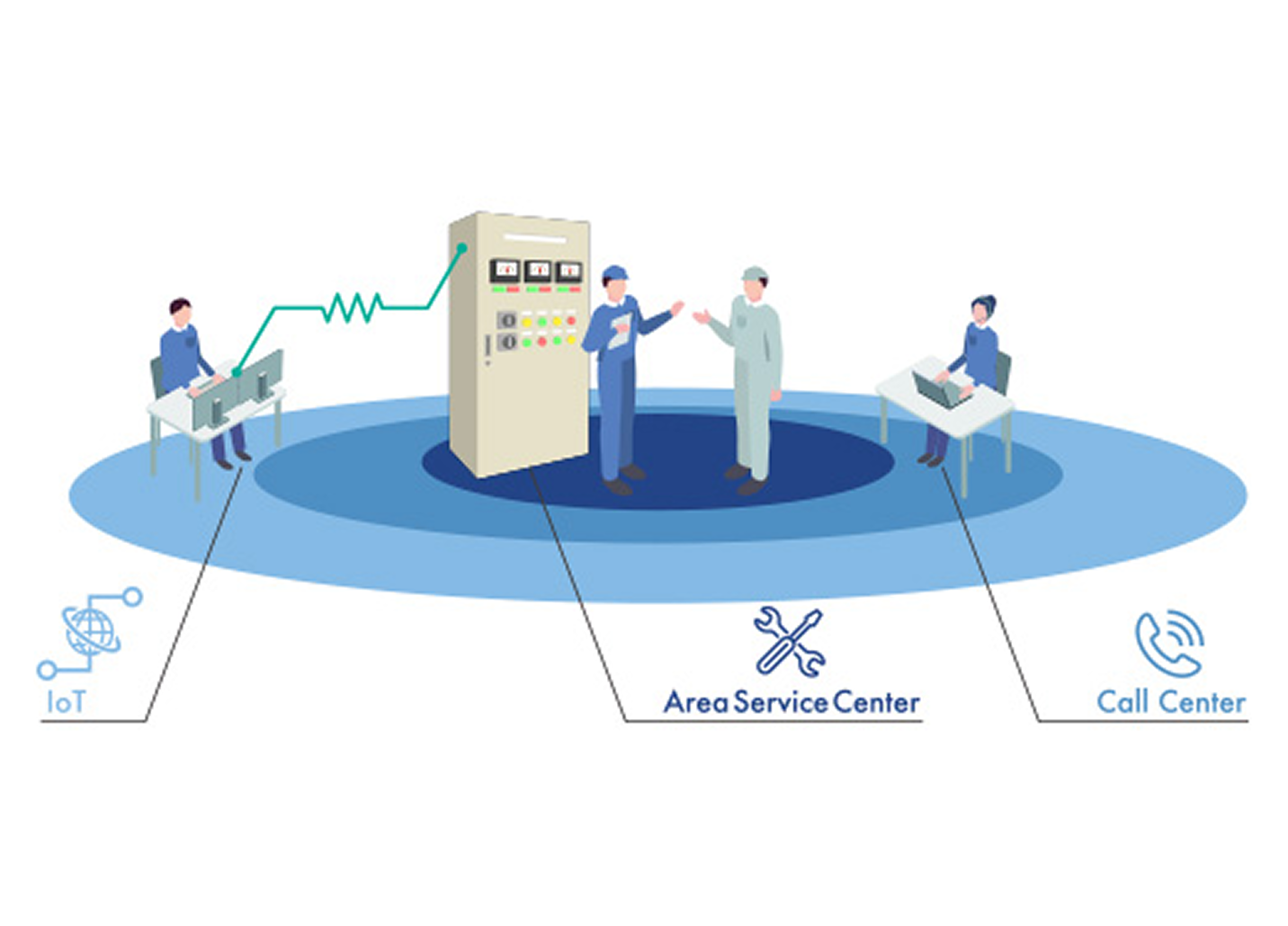 Face to Faceのサポートやコールセンターは、トラブルの事後対応が中心ですが、お客さまから強く求められるのは、設備を止めないために、トラブルを未然に防ぐこと。定期点検による予防保全や、設備の常時監視でトラブルの予兆を察知する予知保全がより重要になっています。