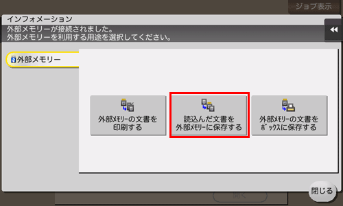 - USBメモリーから読込んだファイルのボックスへの保存を許可する場合は、「文書読込」をタップして、ONにします。