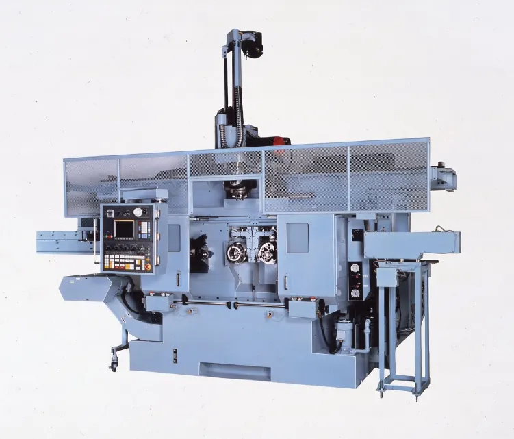 ムラテックの工作機械事業における主力製品のひとつが、金属部品を削って加工する「旋盤」です。なかでも、一台で部品の表裏を自動加工できる「2軸旋盤」は高い効率を誇る機械ですが、当時はひとつの課題を抱えていました。それが、加工ワークを回転主軸に着脱して工程間のワーク搬送を行う「ローダ」です。