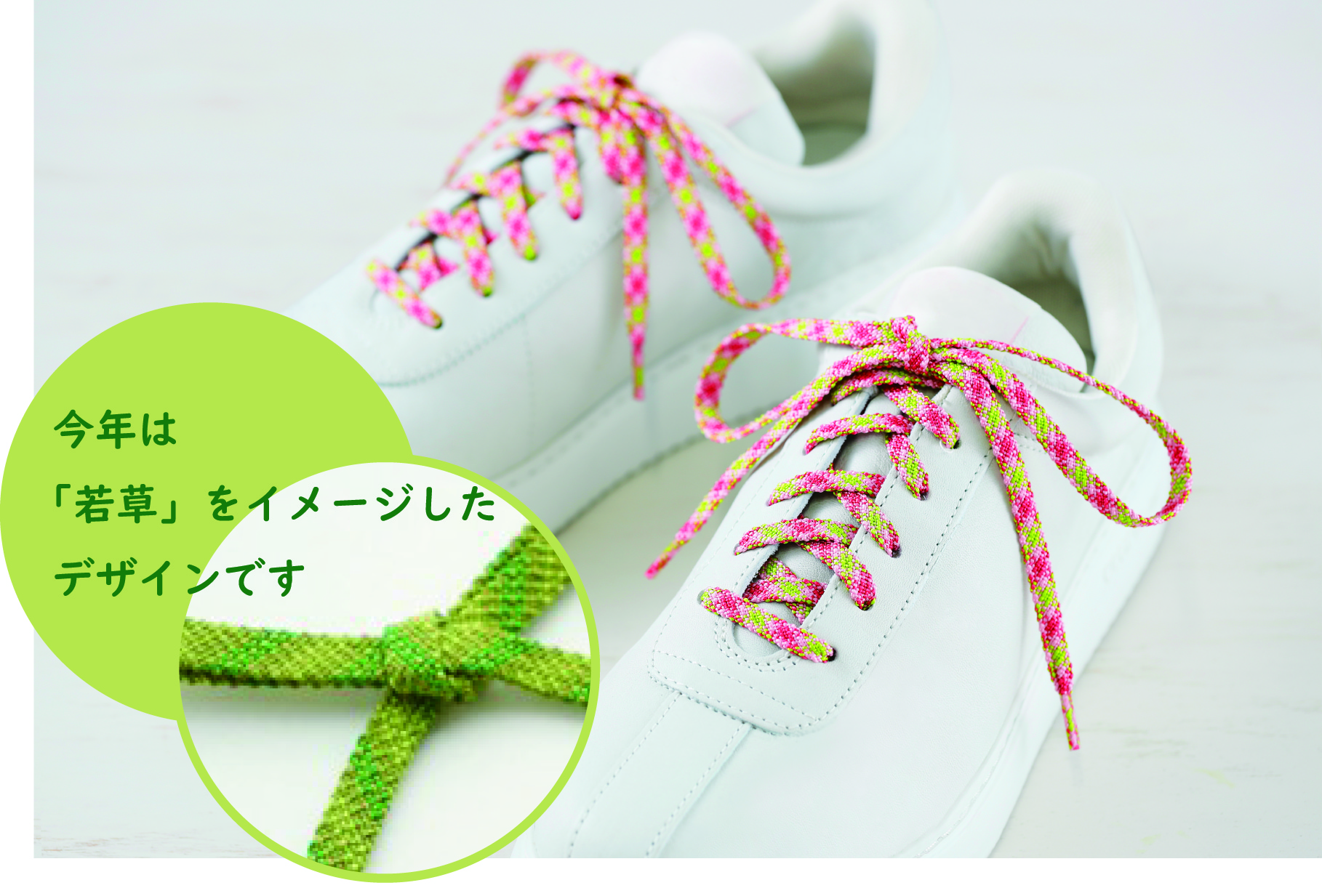 次世代のランナーたちが未来へバトンをつなぐイメージで靴紐を製作しております。